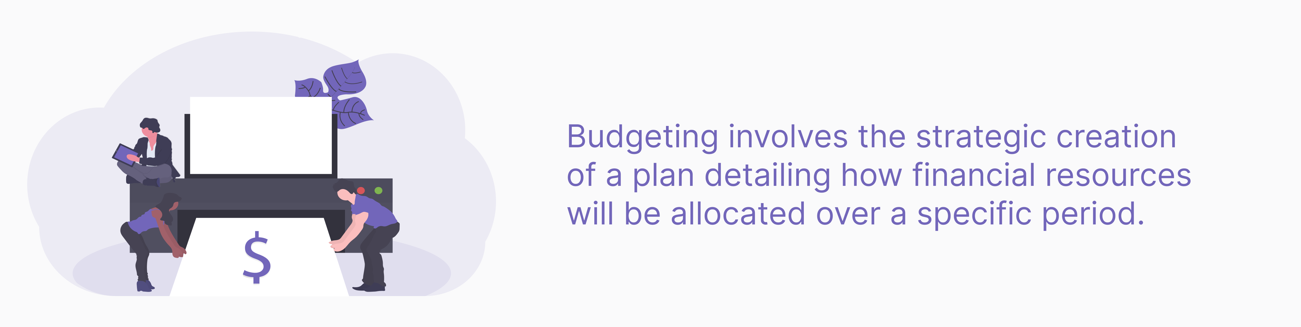 Budgeting involves the strategic creation of a plan detailing how financial resources will be allocated over a specific period. The process encompasses estimating both revenue and expenses to ensure the alignment of financial activities with goals and obligations. The primary objective is effective financial management.