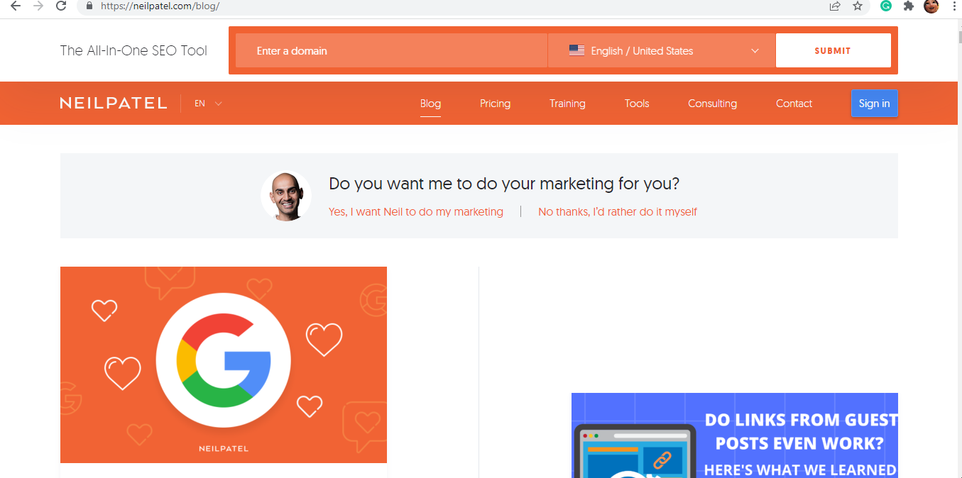Neil Patel’s blog is a business and marketing blog well-known to SEO Marketers. From the blog’s name itself, it’s a blogging site founded by Neil Patel, a New York Bestselling author and top web influencer.