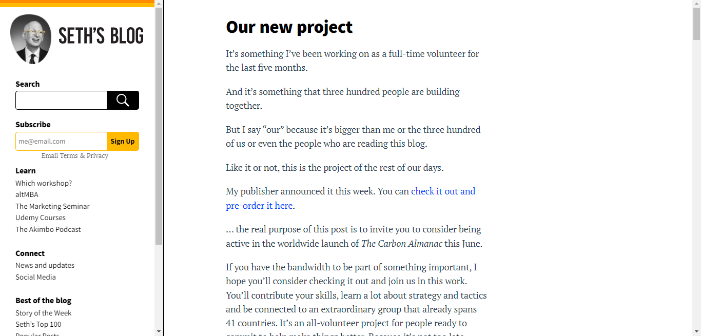 Seth Godin’s blog is one of the best marketing and business blogs that you should not miss reading!