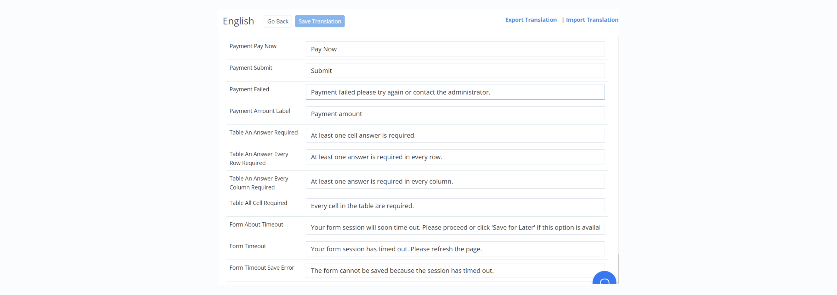- Once you’re all good with your error and direction messages, don’t forget to click on Save Translation.
