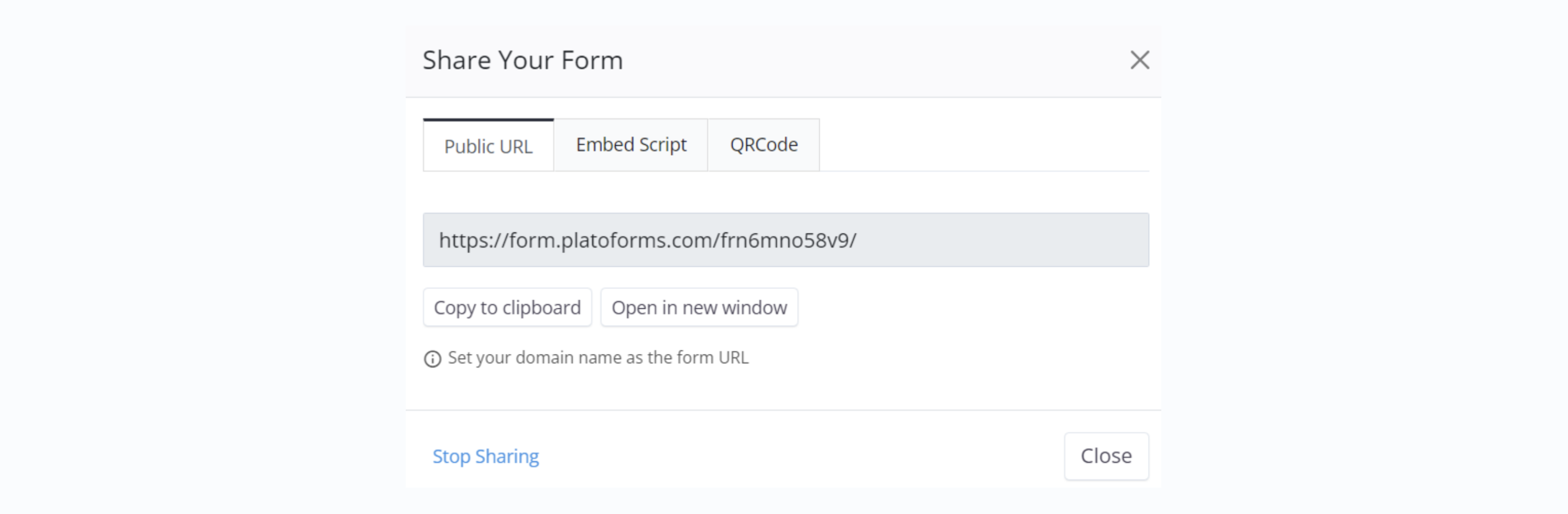 Once the Share Your Forms Window appears, click on the Copy to Clipboard button.