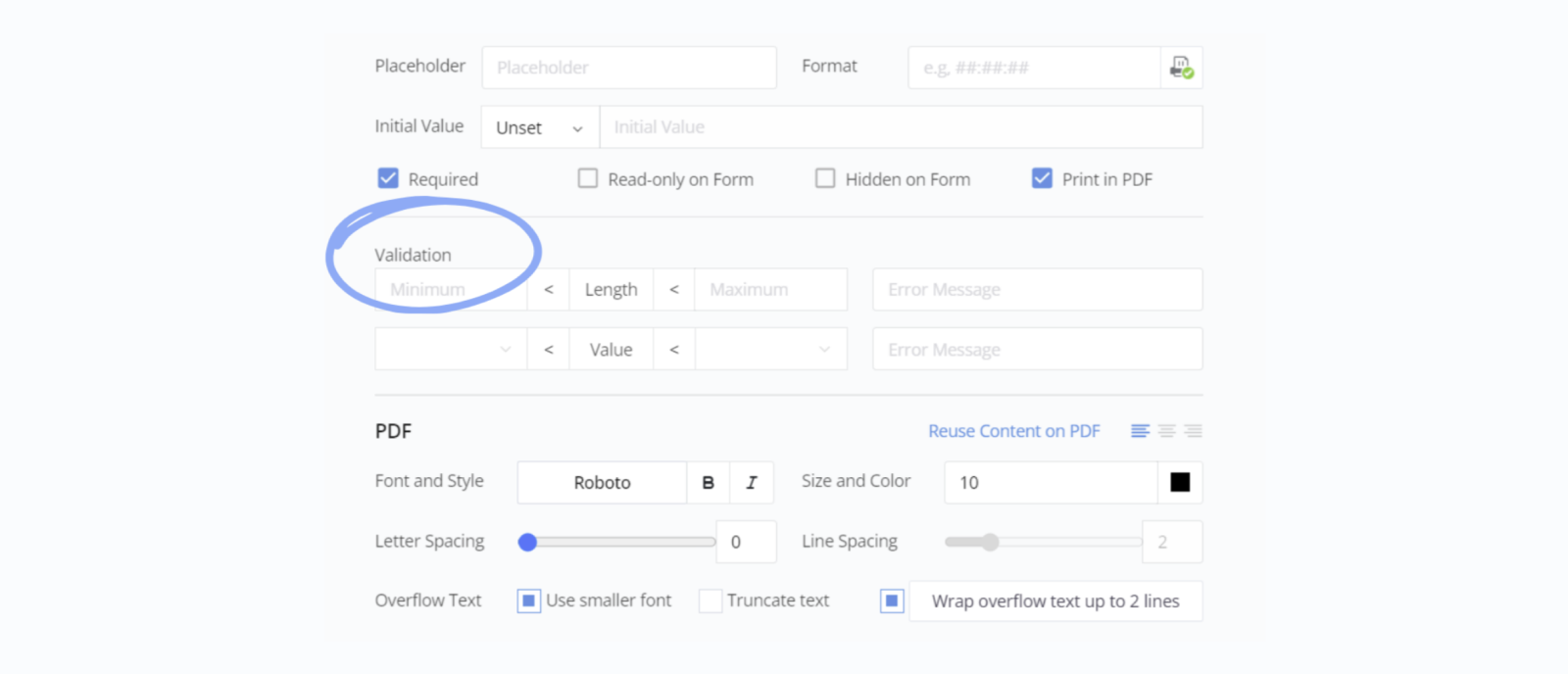 - From there, you can add validation and type in the error message you want to appear if the field validation isn’t met.