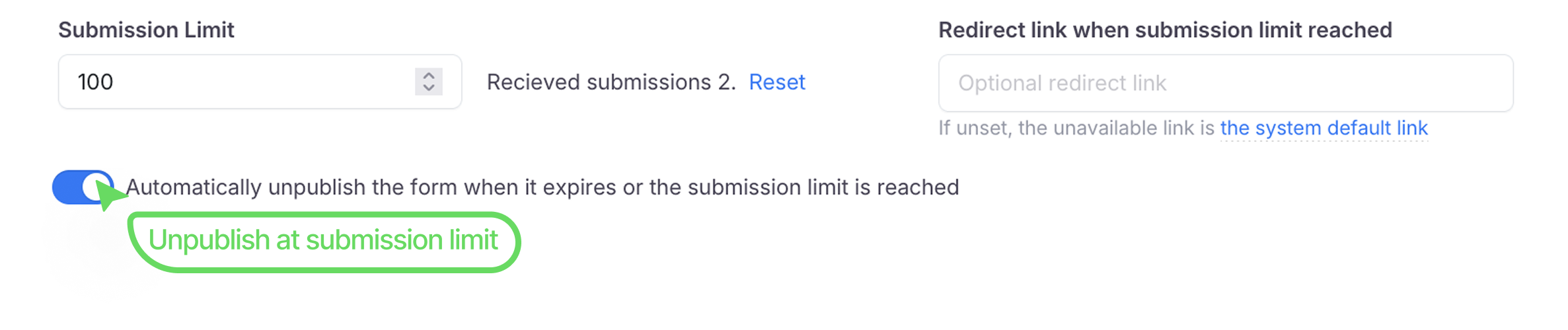 - Scroll down to Submission Limit and set the maximum number of responses.