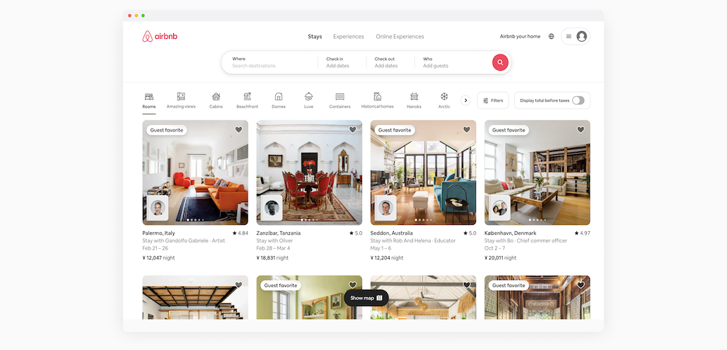 Airbnb’s homepage adopts a minimalist and user-centric strategy, devoid of extensive marketing copy. Users are encouraged to simply input their preferences, choose a room, and click the search button. This simplicity is effective for several reasons. Firstly, it places users in control, allowing them to express their needs efficiently. The clarity of the process, emphasized by a clear call-to-action, minimizes friction in the user journey. The strategy caters to the modern user’s preference for swift interactions, making it particularly effective for mobile users. In essence, Airbnb’s homepage design prioritizes ease of use and quick access to information, enhancing the overall user experience.