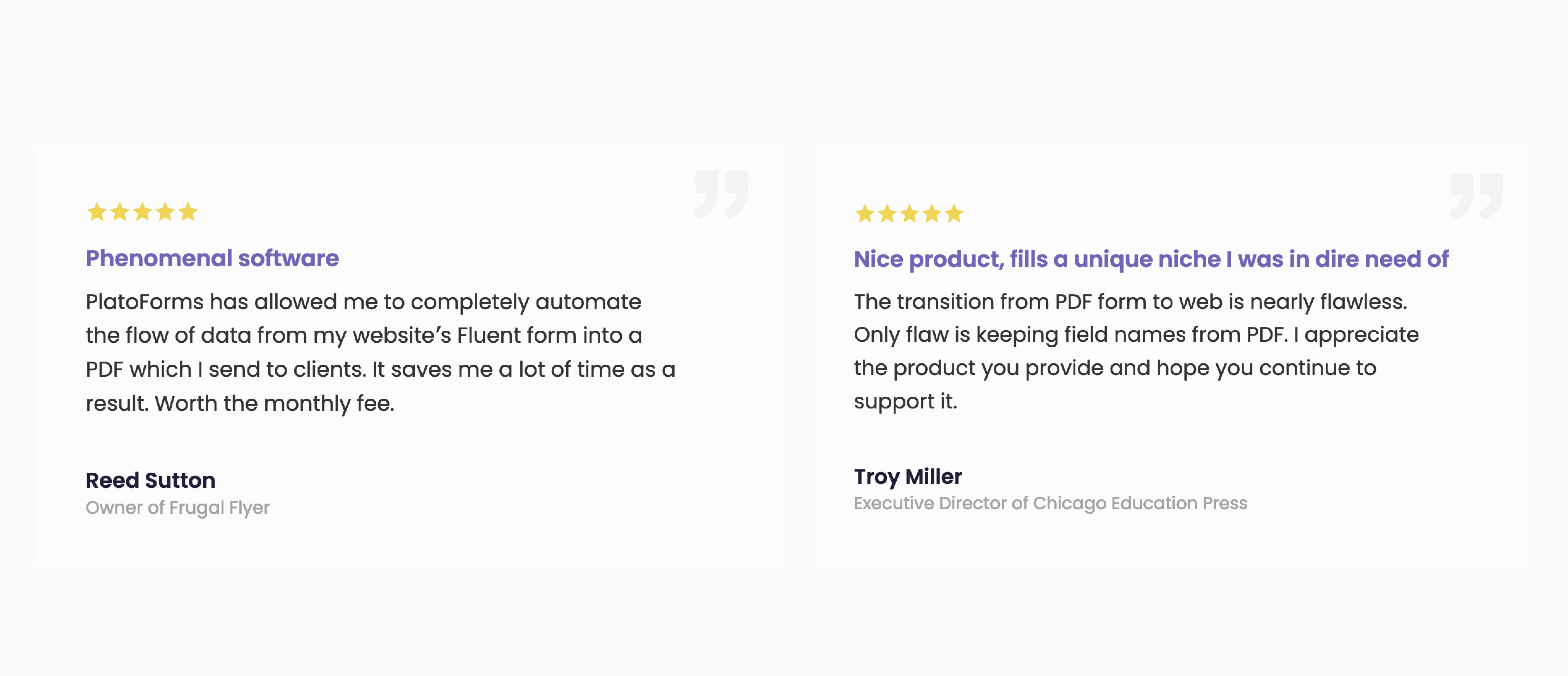 PlatoForms gets straight to the point, clearly communicating its services to the audience.