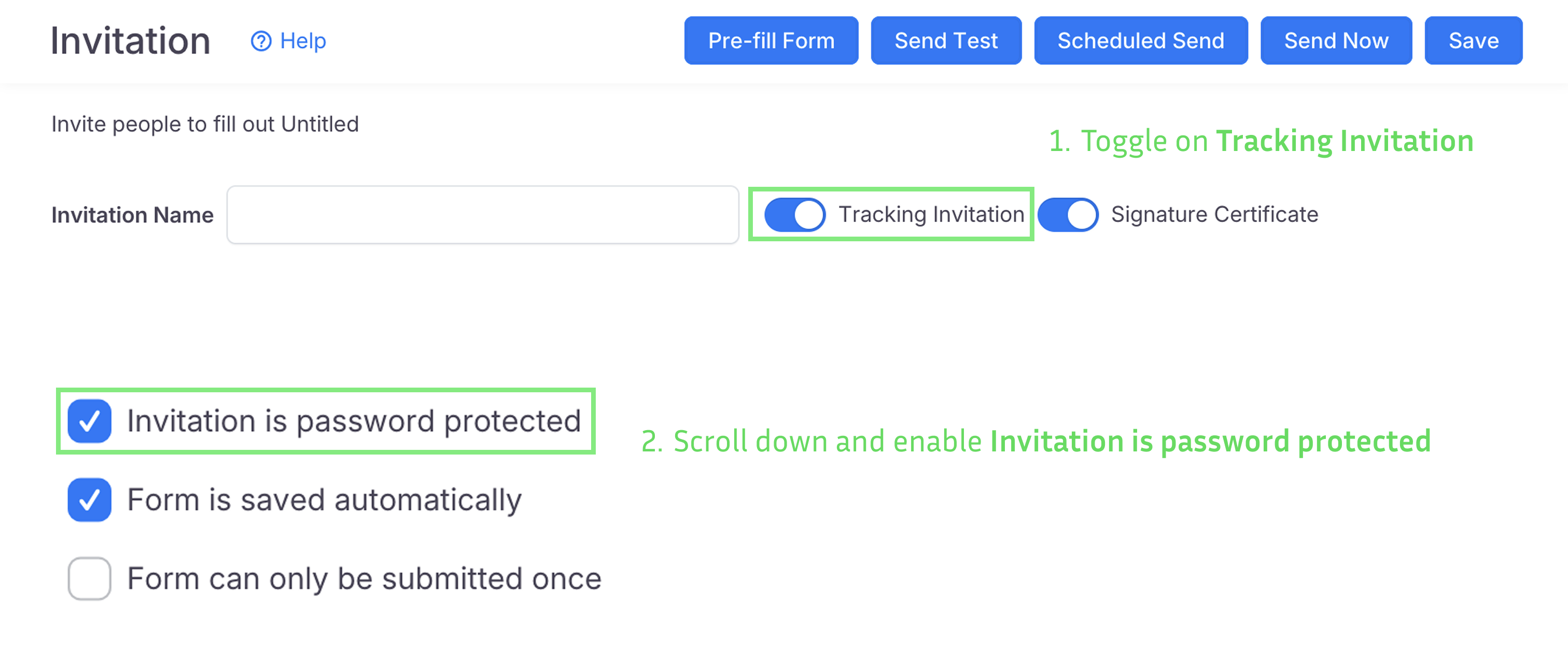 | Invitation Password | Sending forms to specific individuals only | Very high |