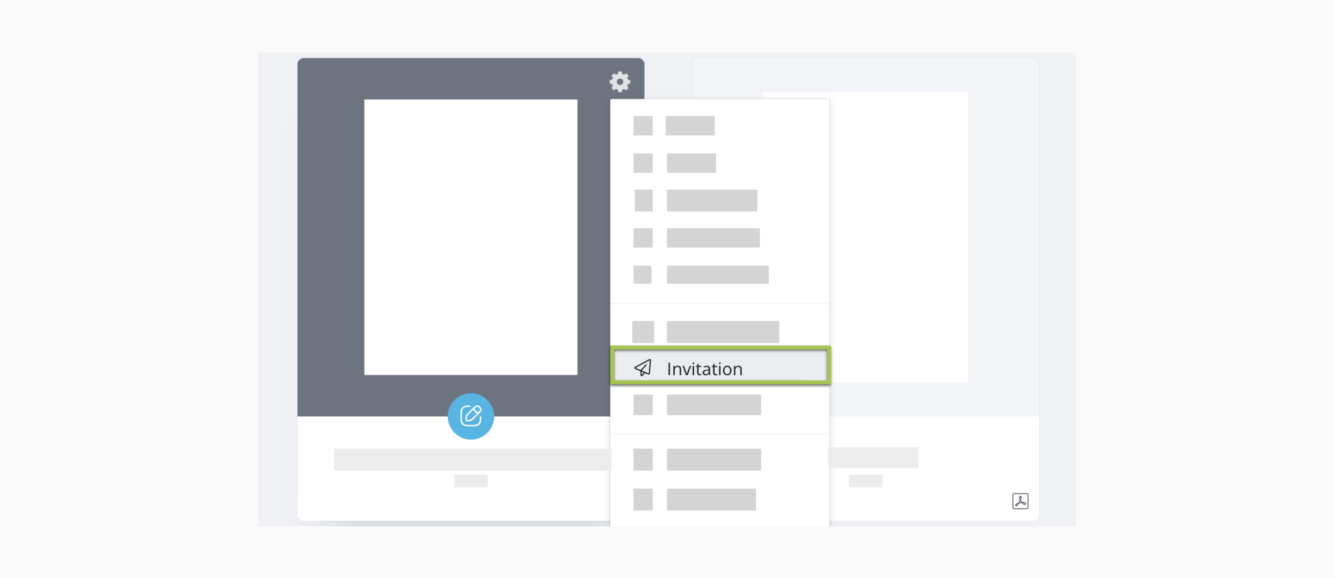 Click the Settings (gear) button at the top right of the form, then click Invitation.