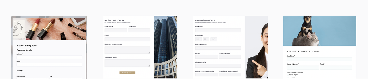 Let’s explore some examples of the stylish online forms you can create with our tool, showcased below: