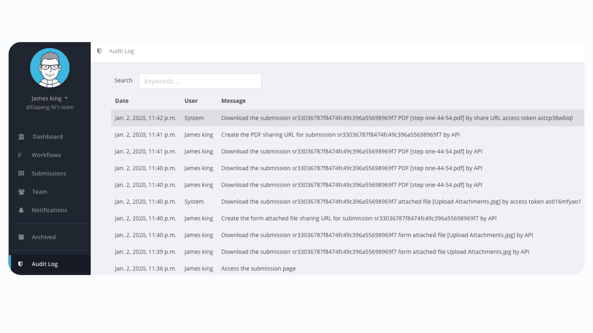 - As a Team Admin, you can track sharing, authentication, and access activities via the Audit Log in the Dashboard.