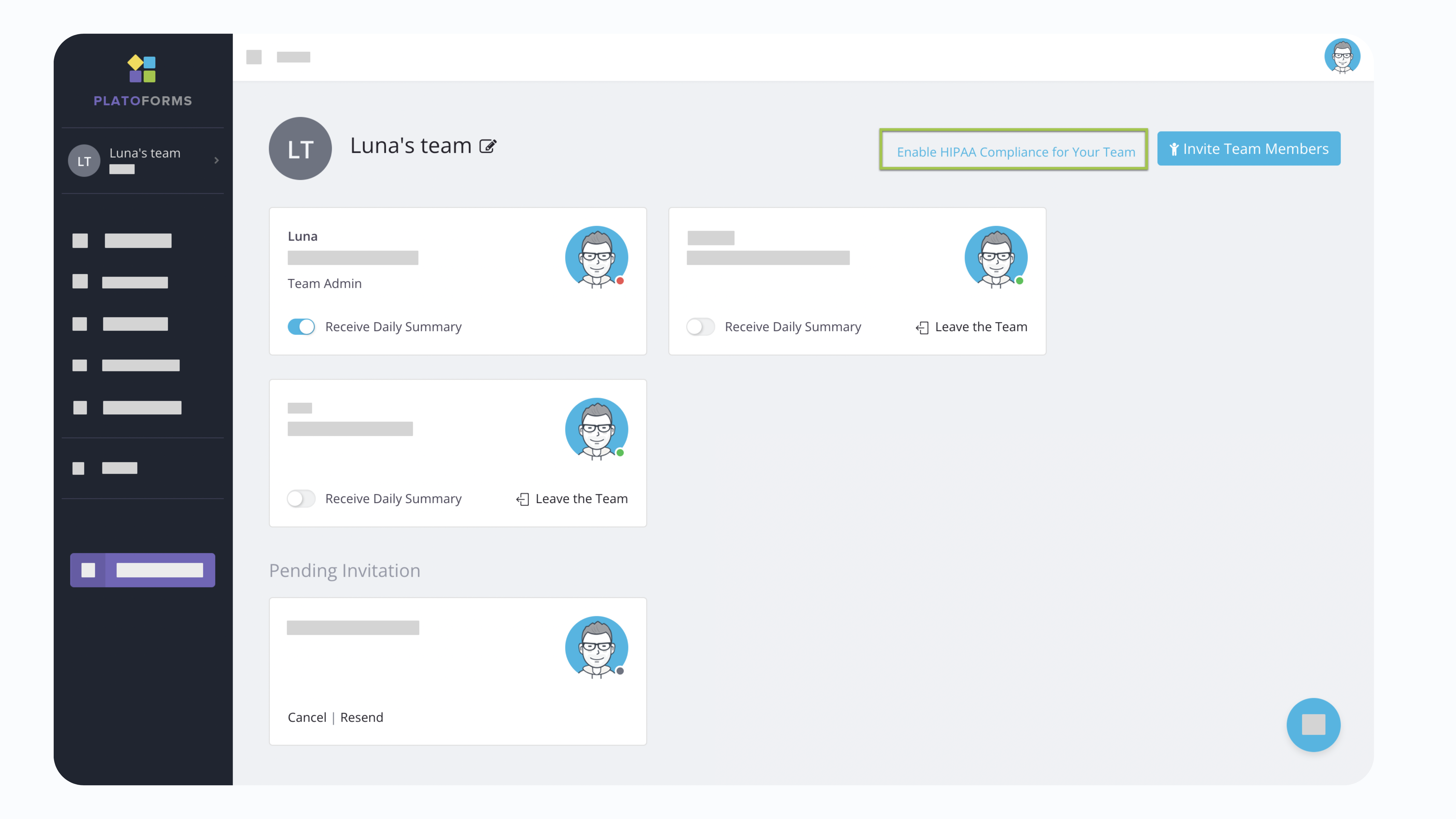 - PlatoForms will upgrade all team members’ accounts to be HIPAA-compliant.