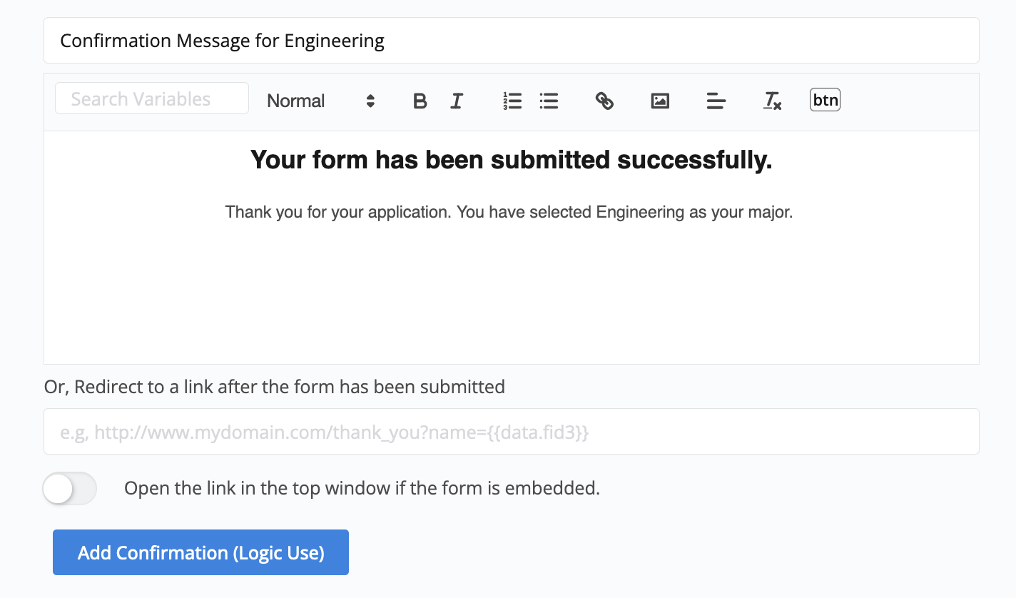ExampleFor instance, if a student picks “Computer Science”, set the confirmation to
