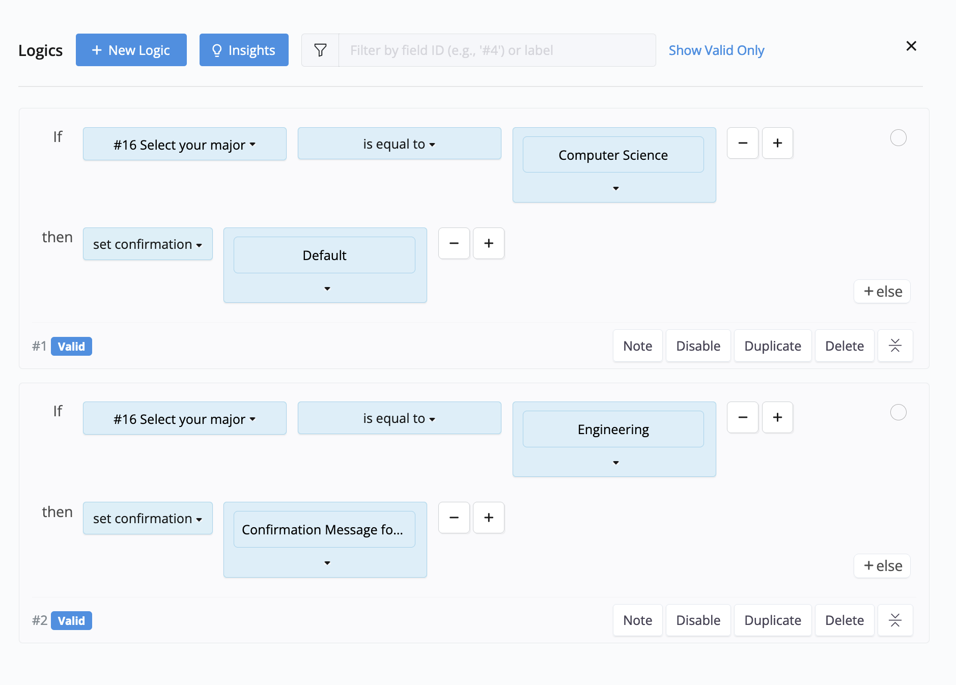 Click the Add Confirmation (Logic Use) button to make a new set of settings. Keep doing this until you’ve set up all the options you need.