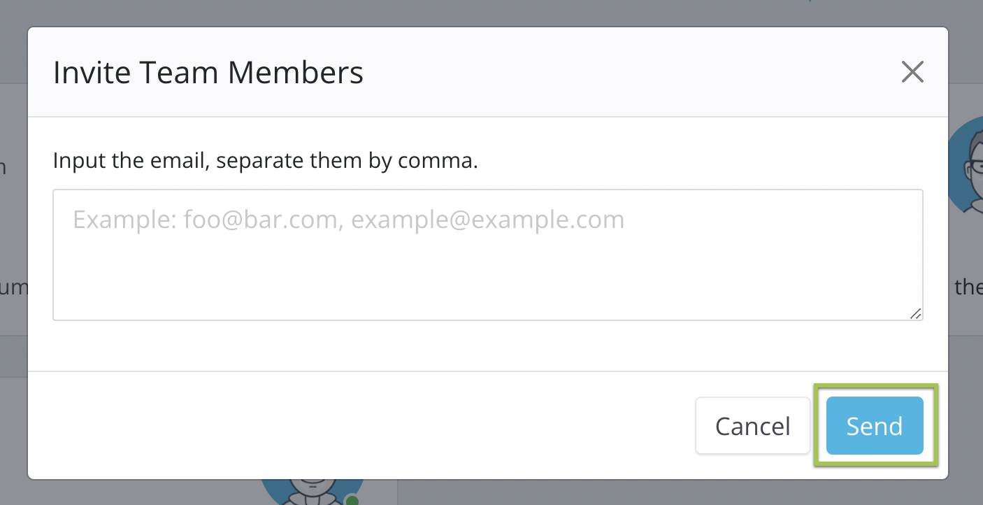 In the pop-up window, enter the email addresses of the new members you want to invite, and then click Send.