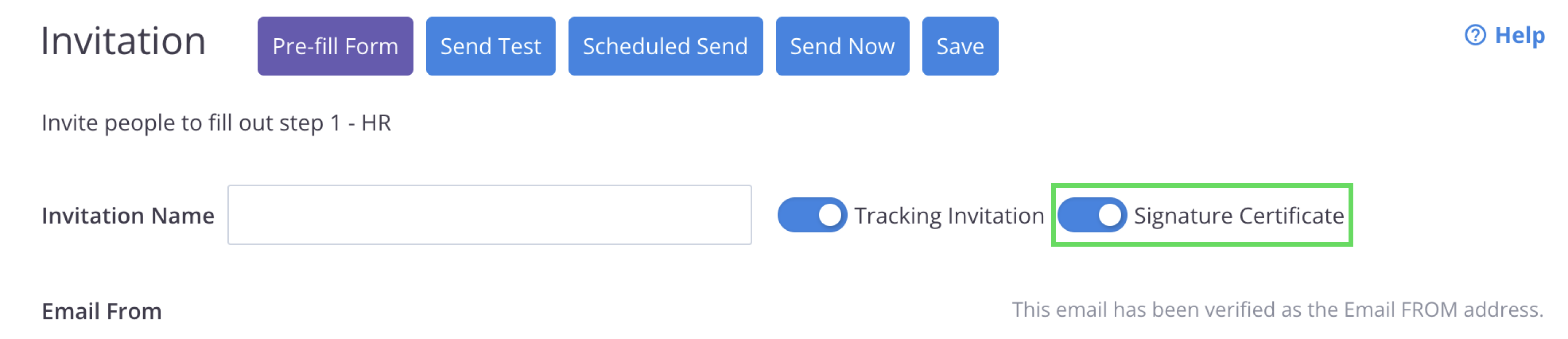 In the Invitation panel, switch on Signature Certificate.