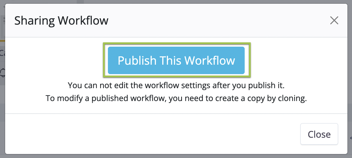 If you need to modify a published Workflow, click the Clone button in the action panel next to your Workflow name. Make changes to the cloned workflow as needed.