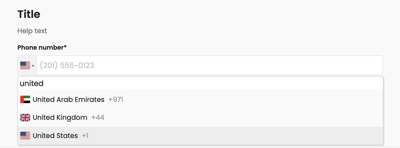 A Phone field lets users select a phone number from a dropdown instead of typing it in a Text (Number) field. It’s ideal for collecting phone numbers and enhancing communication for tasks like reminders or support follow-ups.
