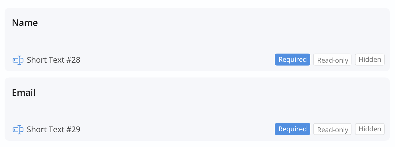 Suppose you have two Text Fields in your form: one for “Name” and another for “Email”.