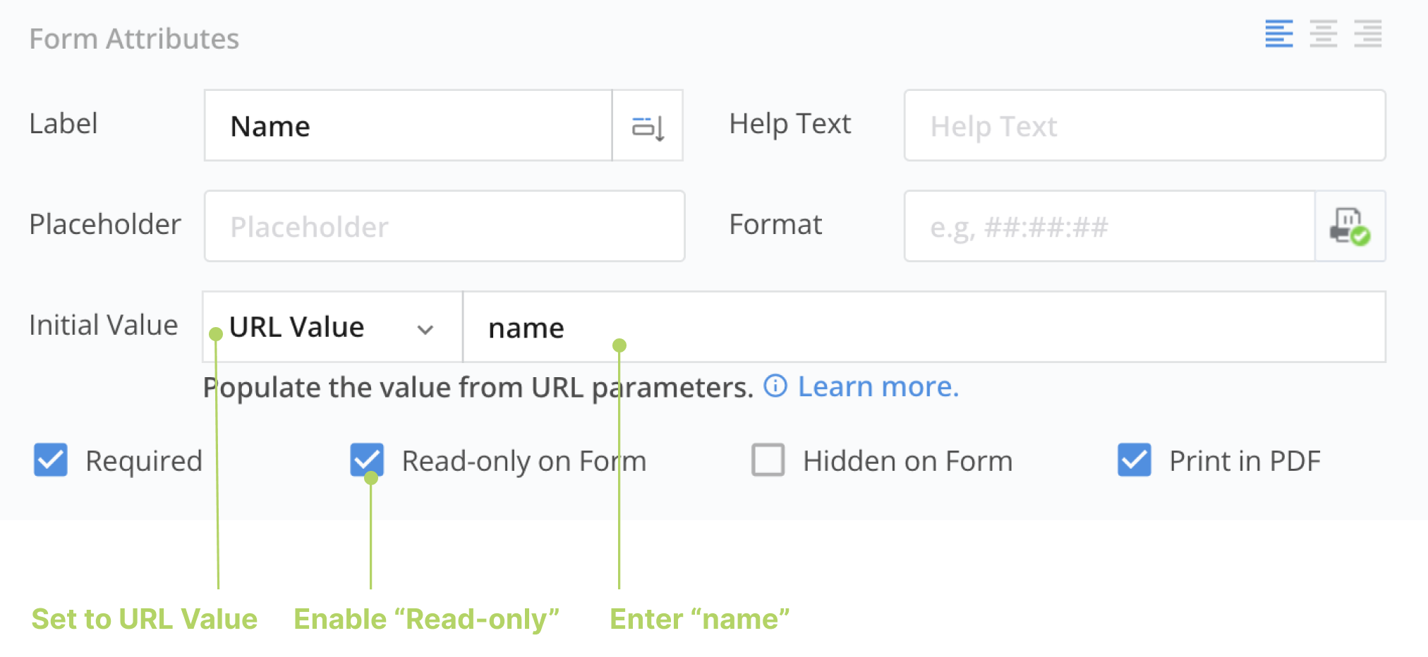 By default, the Text field with an initial value can be edited by the respondent, but in many cases, you may want to make it read-only and hide it in the form while still including it in the PDF.