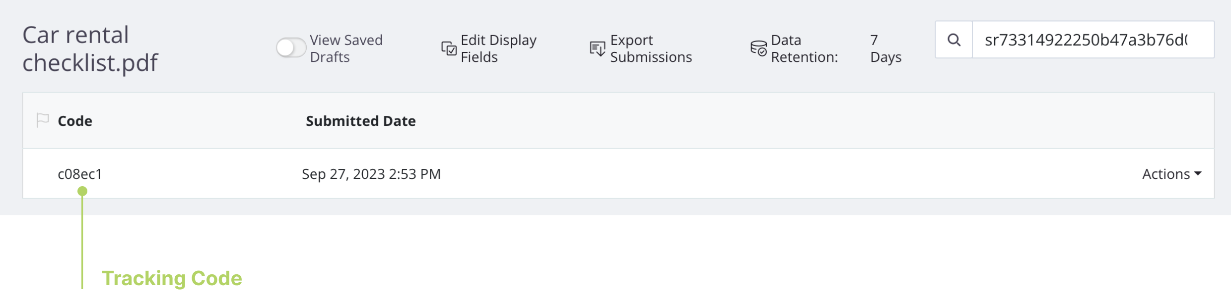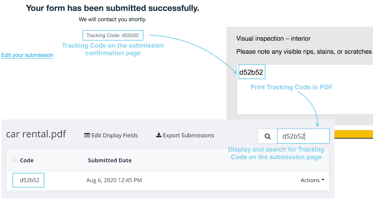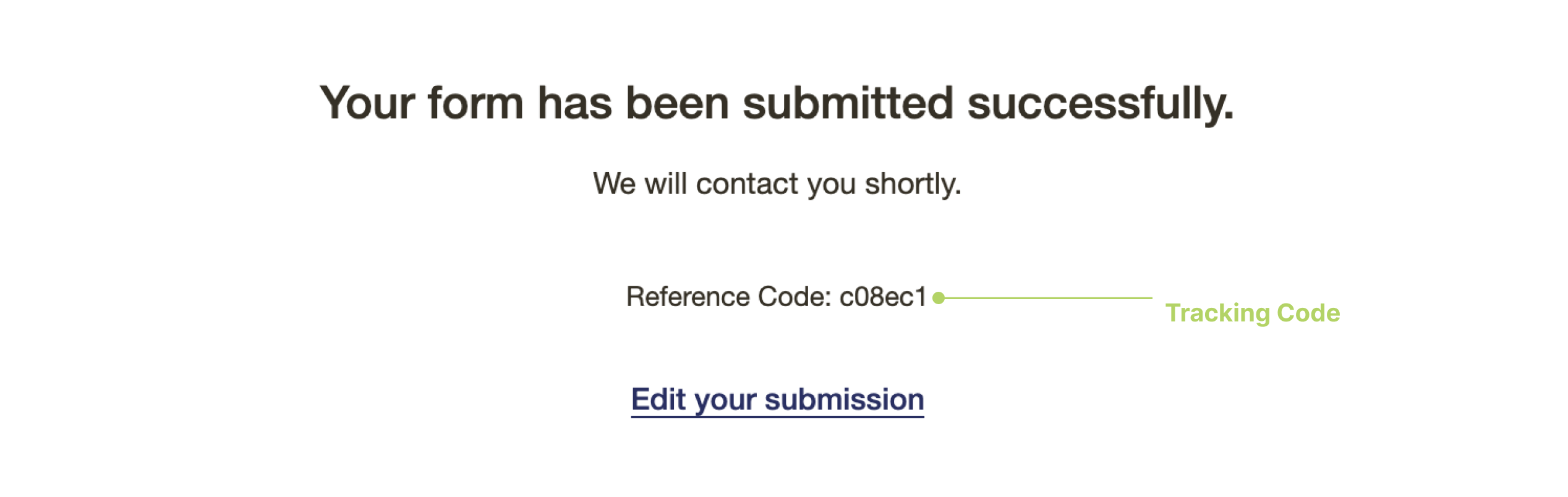 PlatoForms generates a Tracking Code after the respondent submits the form to help you track the information.