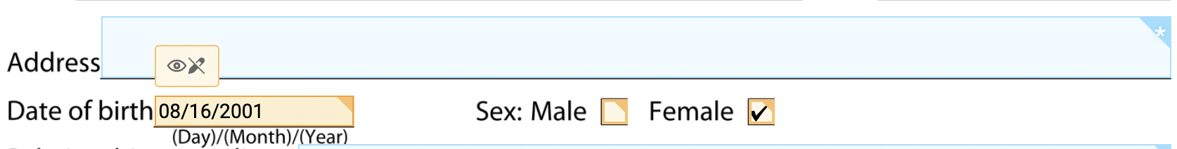 The fields you fill will turn yellow. You can decide if respondents can see them or if they’re read-only (no changes allowed) by crossing out or uncrossing the eye and pen icons.