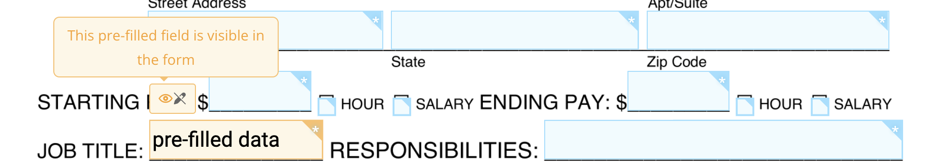 Cross out Visible (eye icon): The pre-filled field is hidden from respondents.