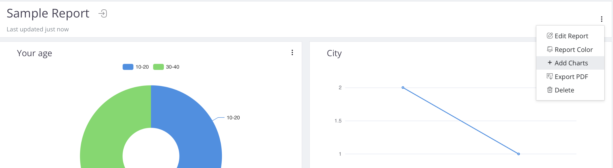 Even after your report is generated, you can add more charts for existing fields or for additional fields: