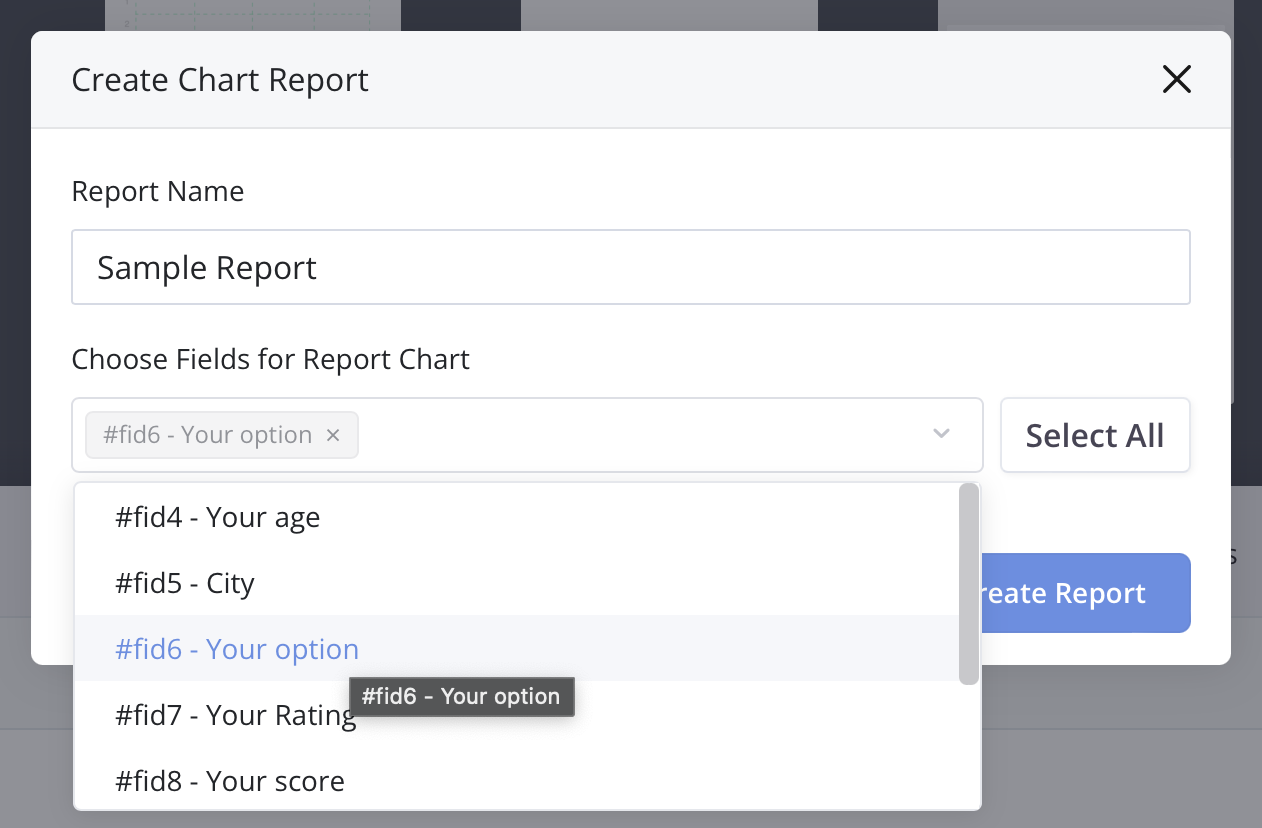 In the window that opens, enter a name for your report, then use the dropdown menu to select the fields you’d like to include in the report. Supported fields include: