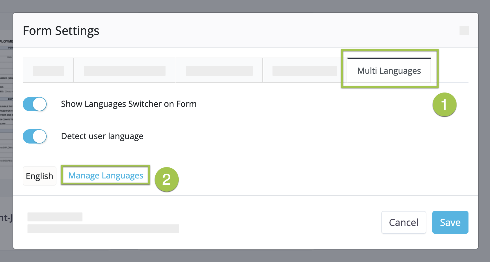 In Form Settings window, switch to the Multi Languages tab, and click Manage Languages.