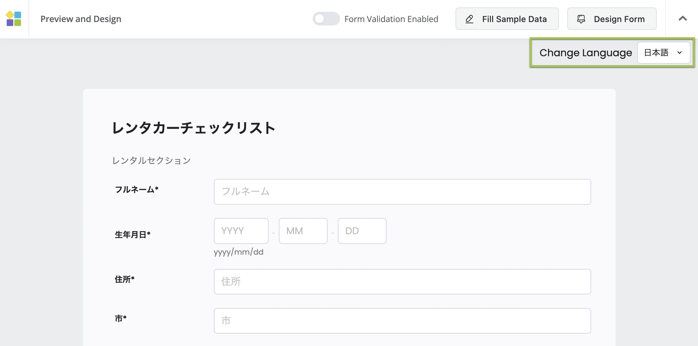 “Preview multi-languages” lets you see how your form looks in different languages: