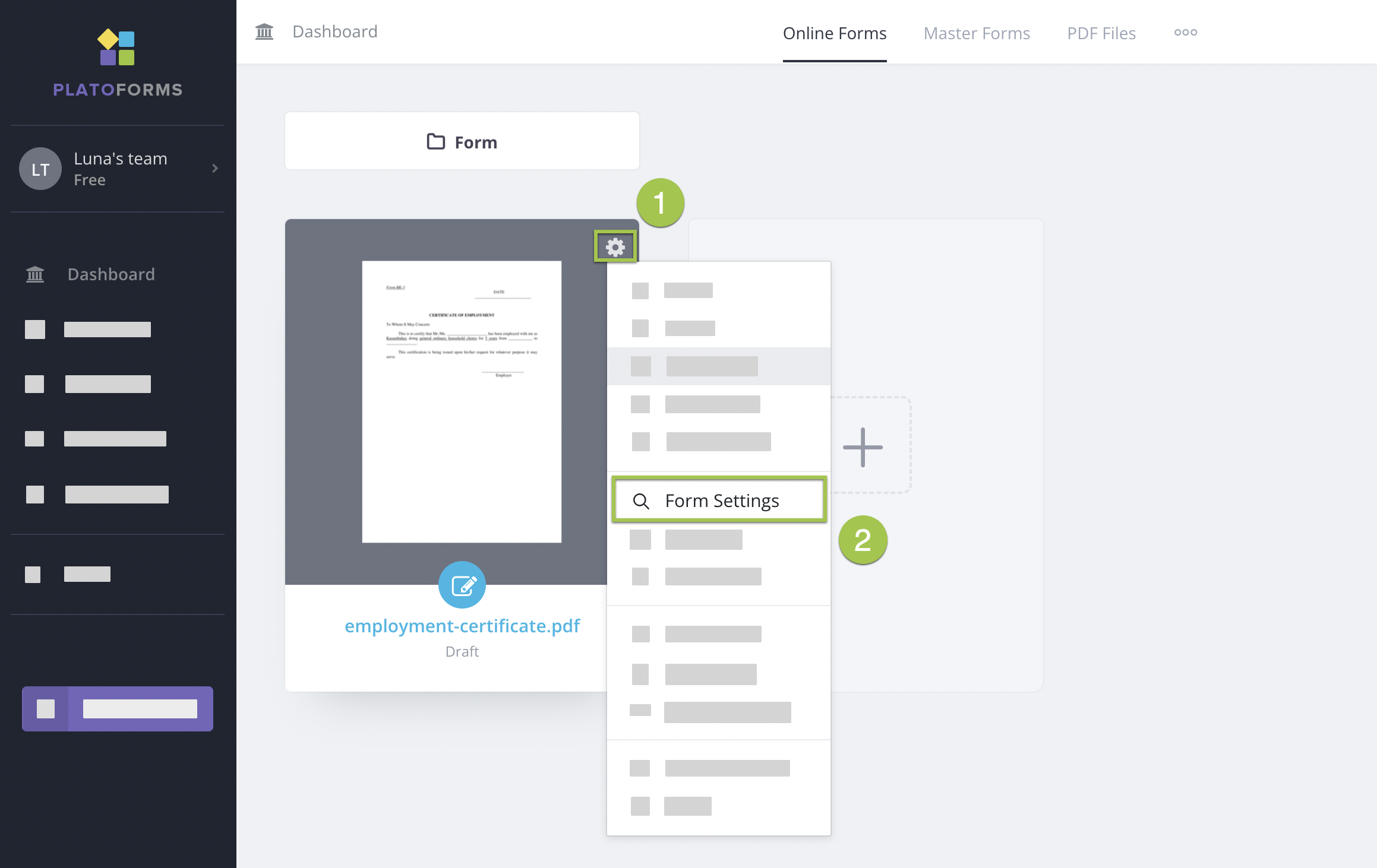Click the Settings (gear) icon in the top right corner and select Form Settings.
