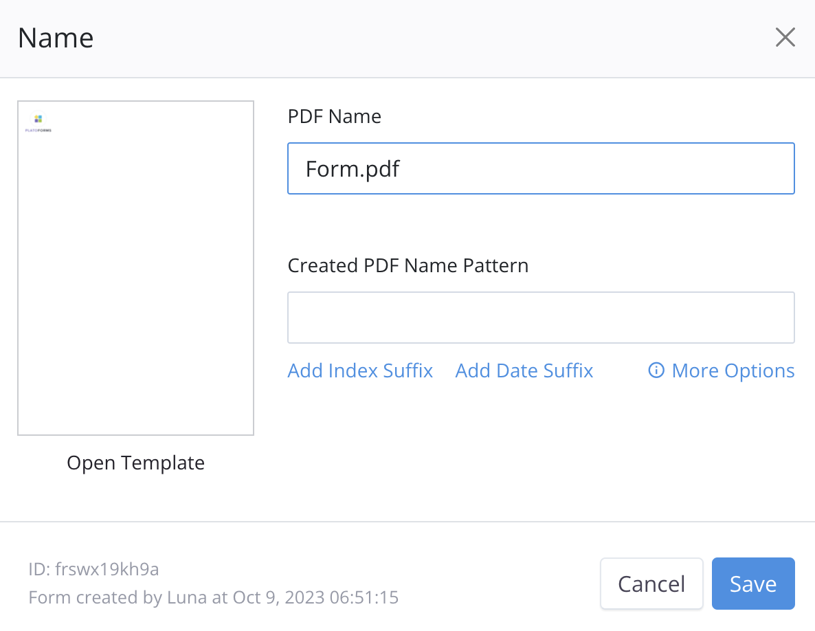Note: You can opt to include the “.pdf” extension in the form’s name.
