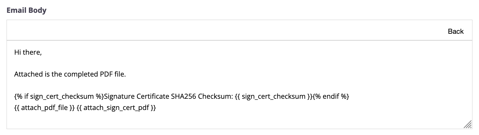 By default, variables like shared_attachment_link, shared_pdf_link and attach_pdf_file include all files. However, you can also be specific about which files you want to share or attach in the email.