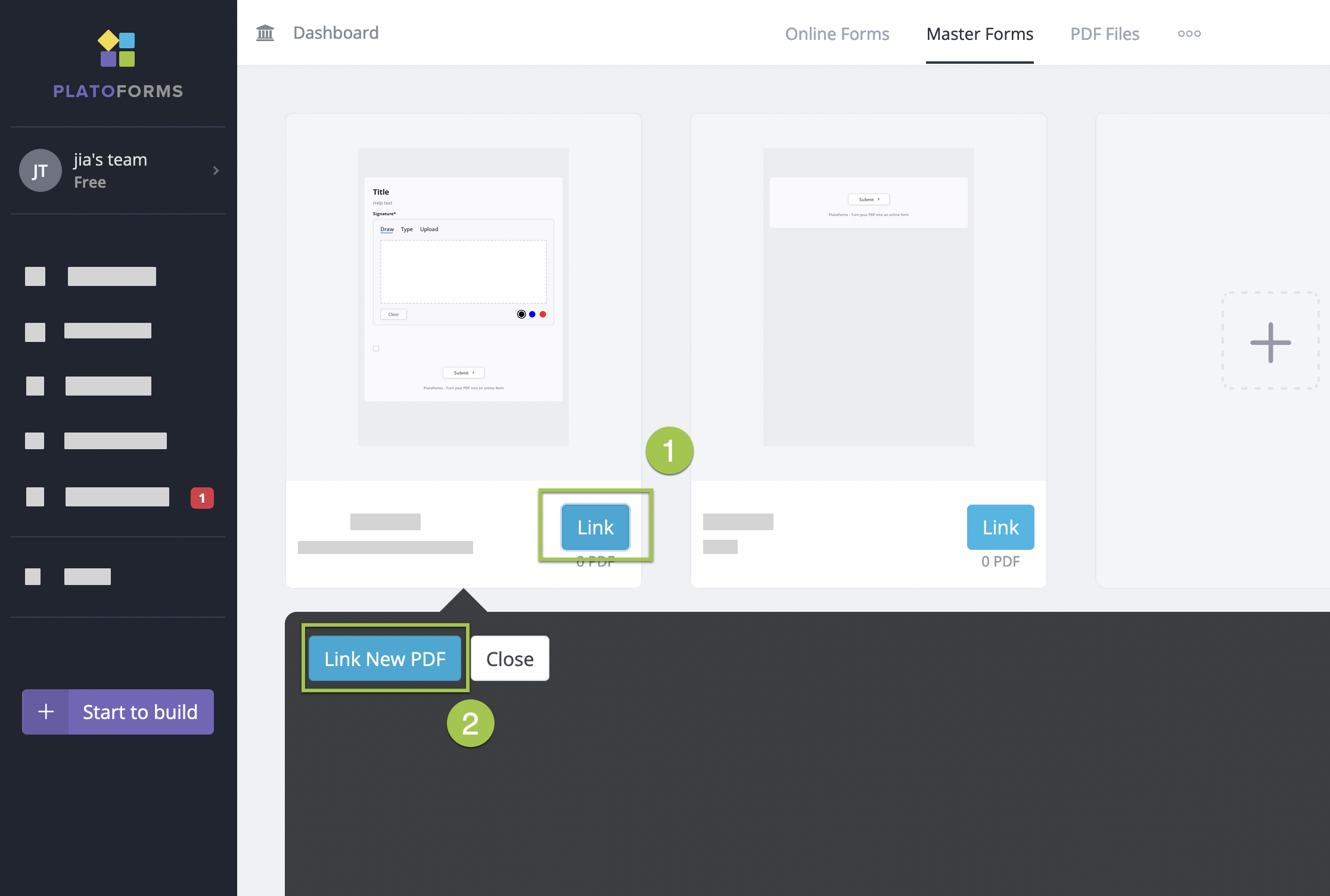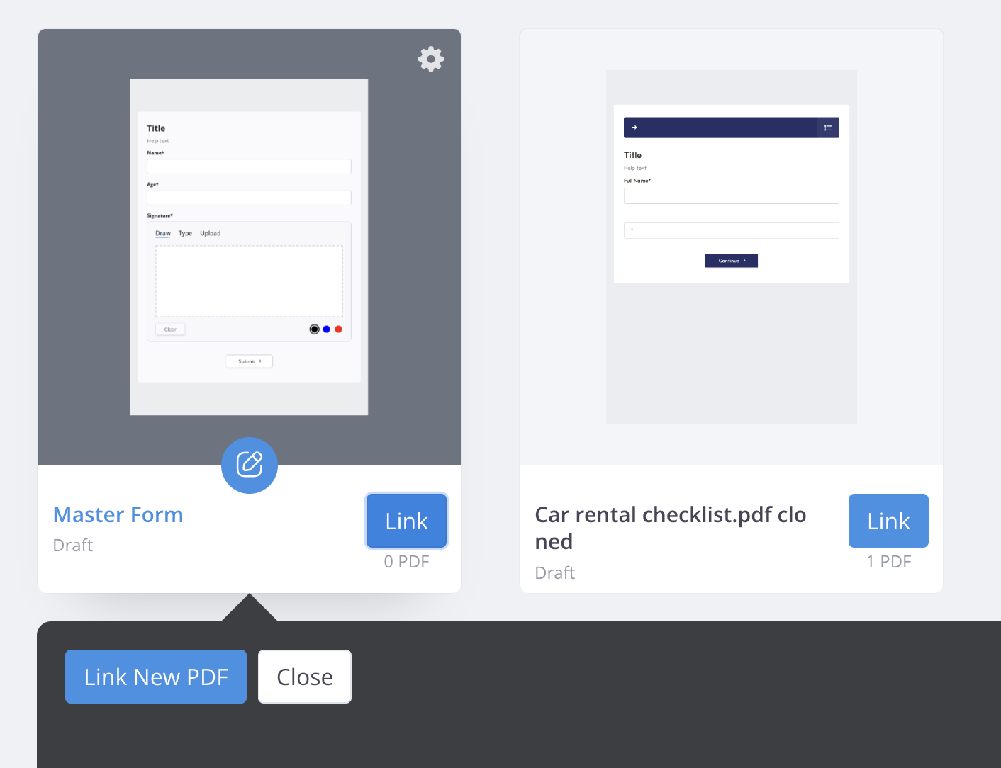- Link the desired PDF to the Master Form, and easily incorporate the fields onto the PDF.