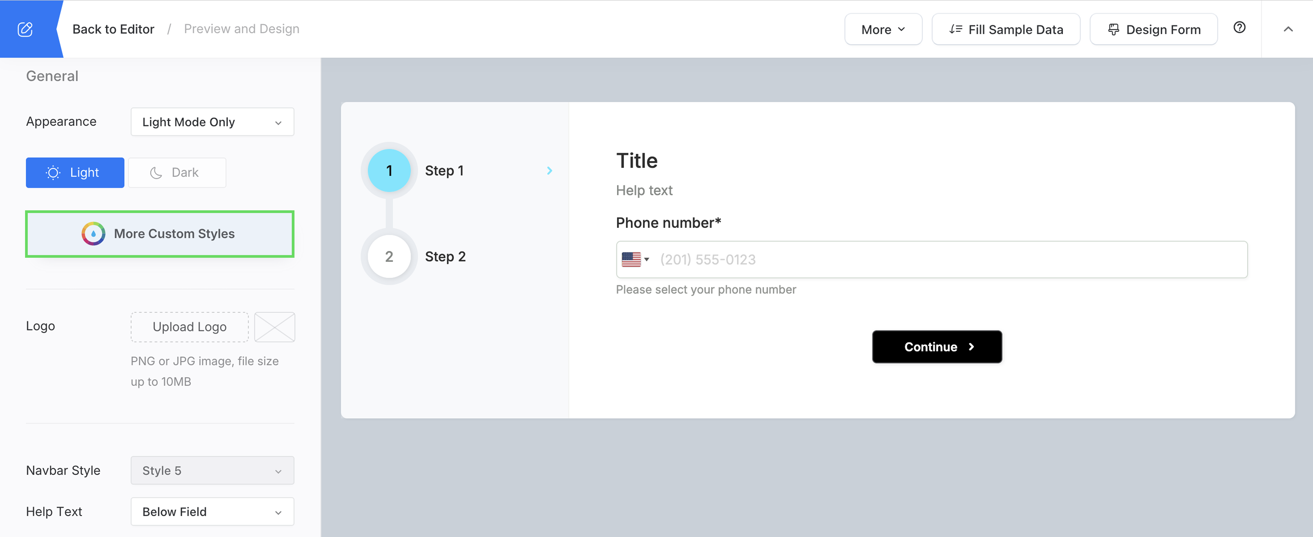 You can further customize your form’s appearance and behavior using the More Custom Styles feature.