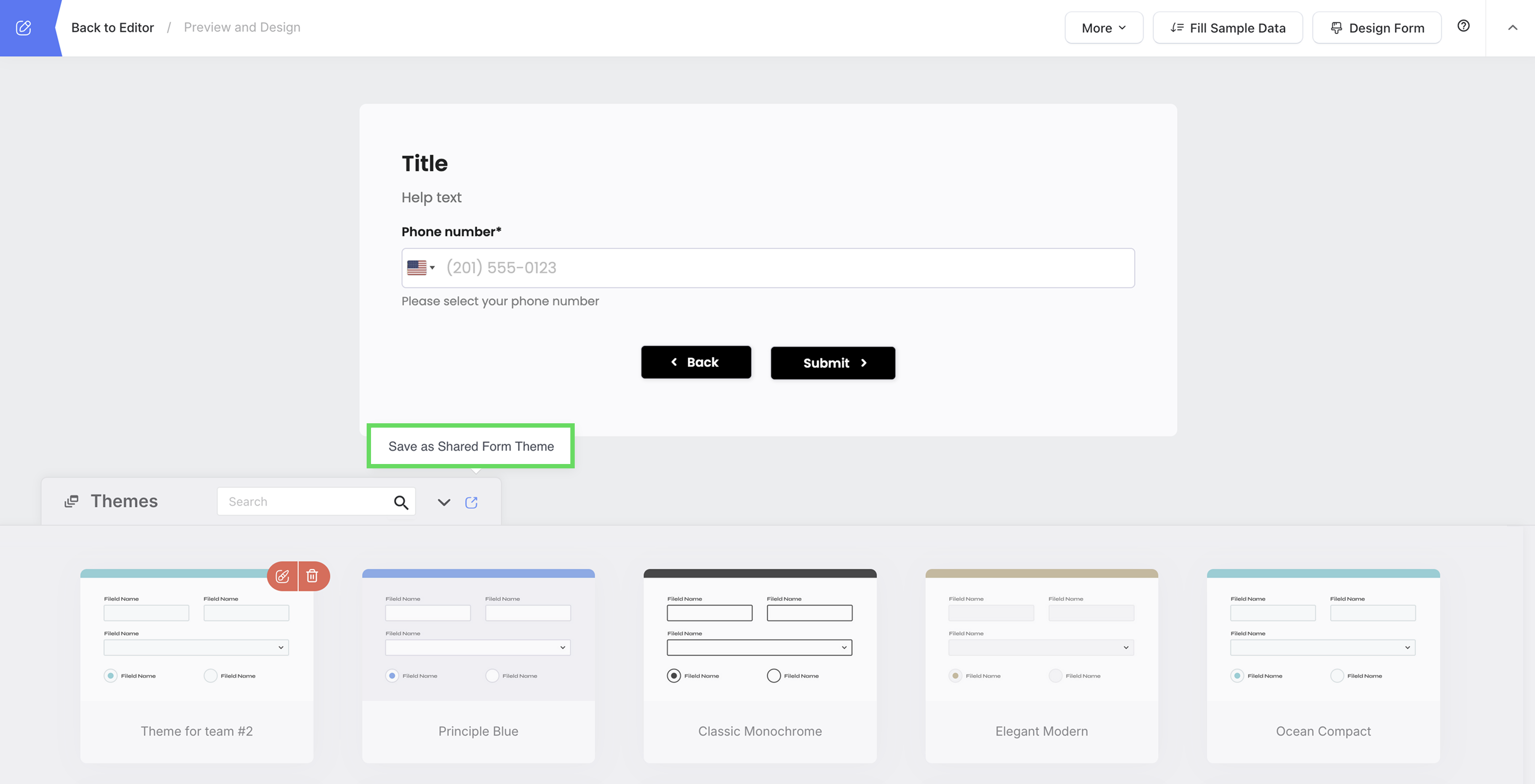 If you want a custom theme for your team, use Save as Shared Form Theme.