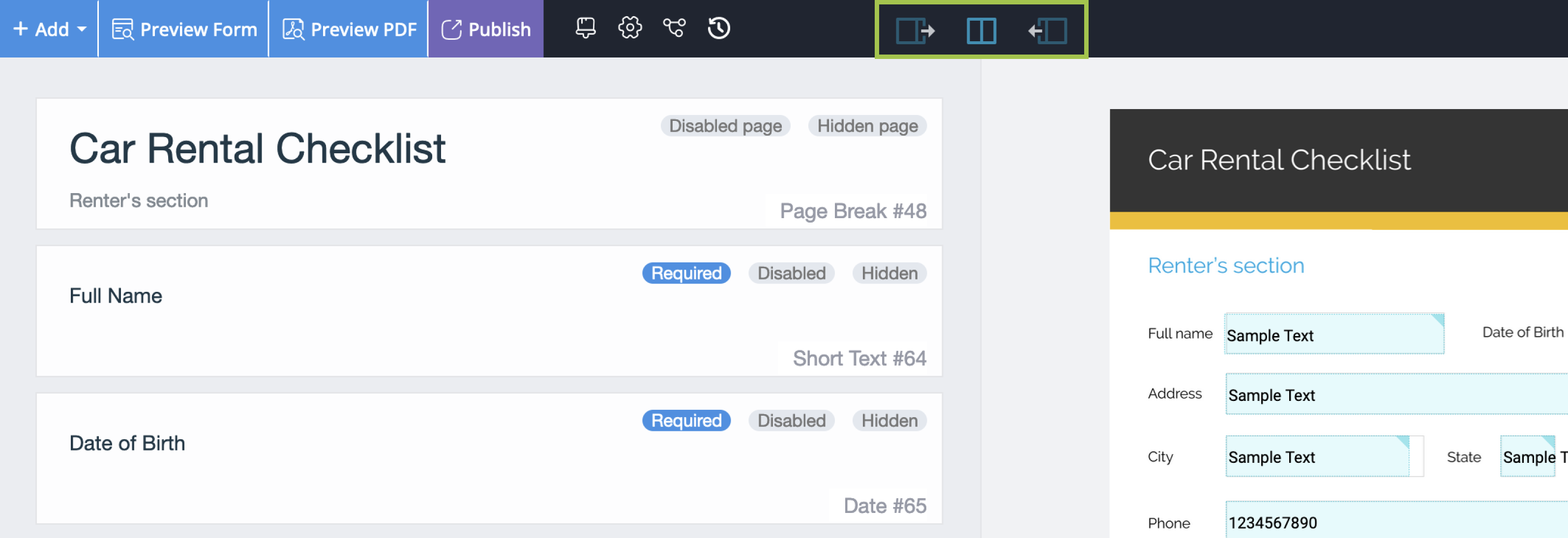 See how your form looks as a PDF. You can change the layout by moving things around or resizing them.