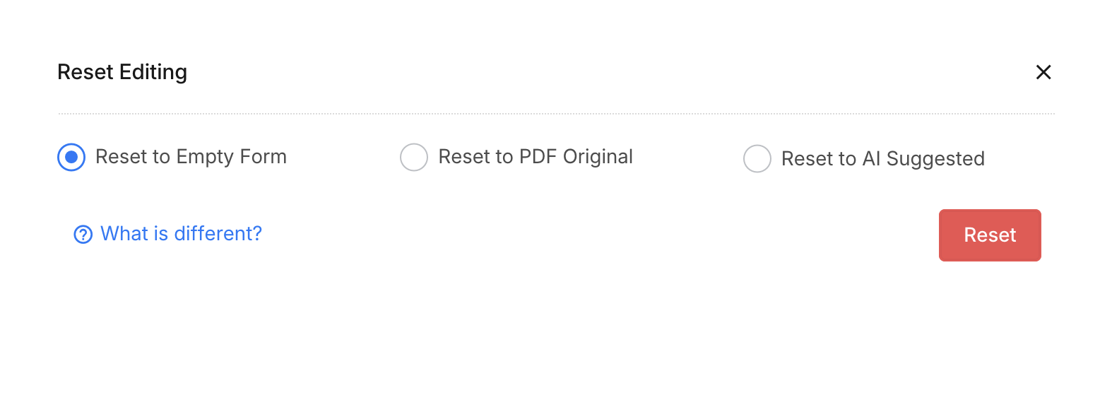 Reverts the form back to its initial version—exactly how it looked when first converted from your uploaded PDF. -
