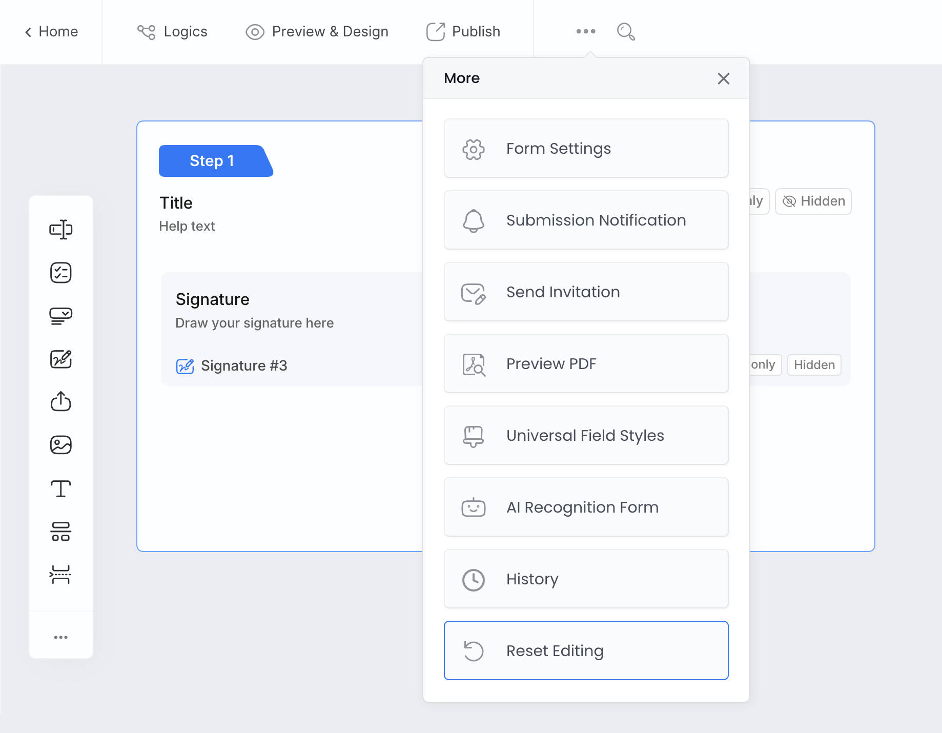 The reset process is irreversible. If you reset your form by mistake, refer to the Restore to history version section to recover an earlier version.