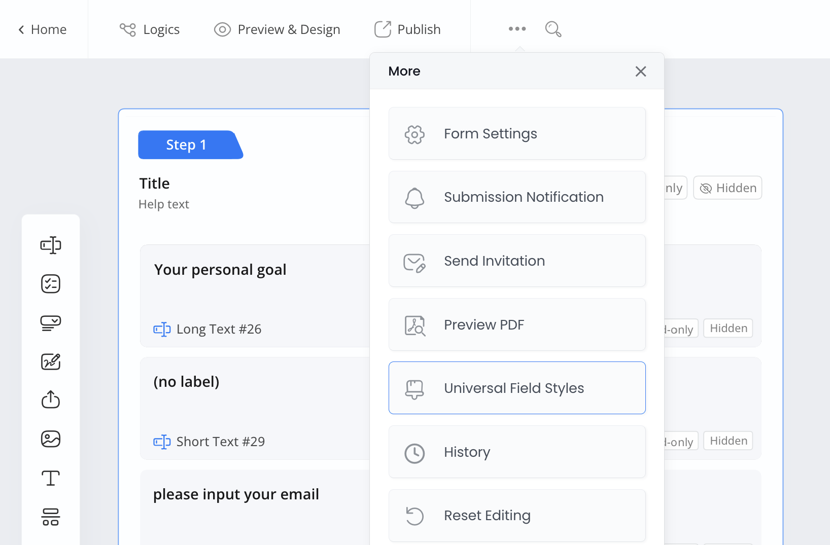 - Apply only to new fields: The new style attributes will only apply to the new fields you add after you apply the changes.