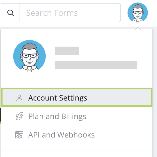 In the top right corner of the Dashboard, click on the avatar and select Account Settings to open the Profile window.