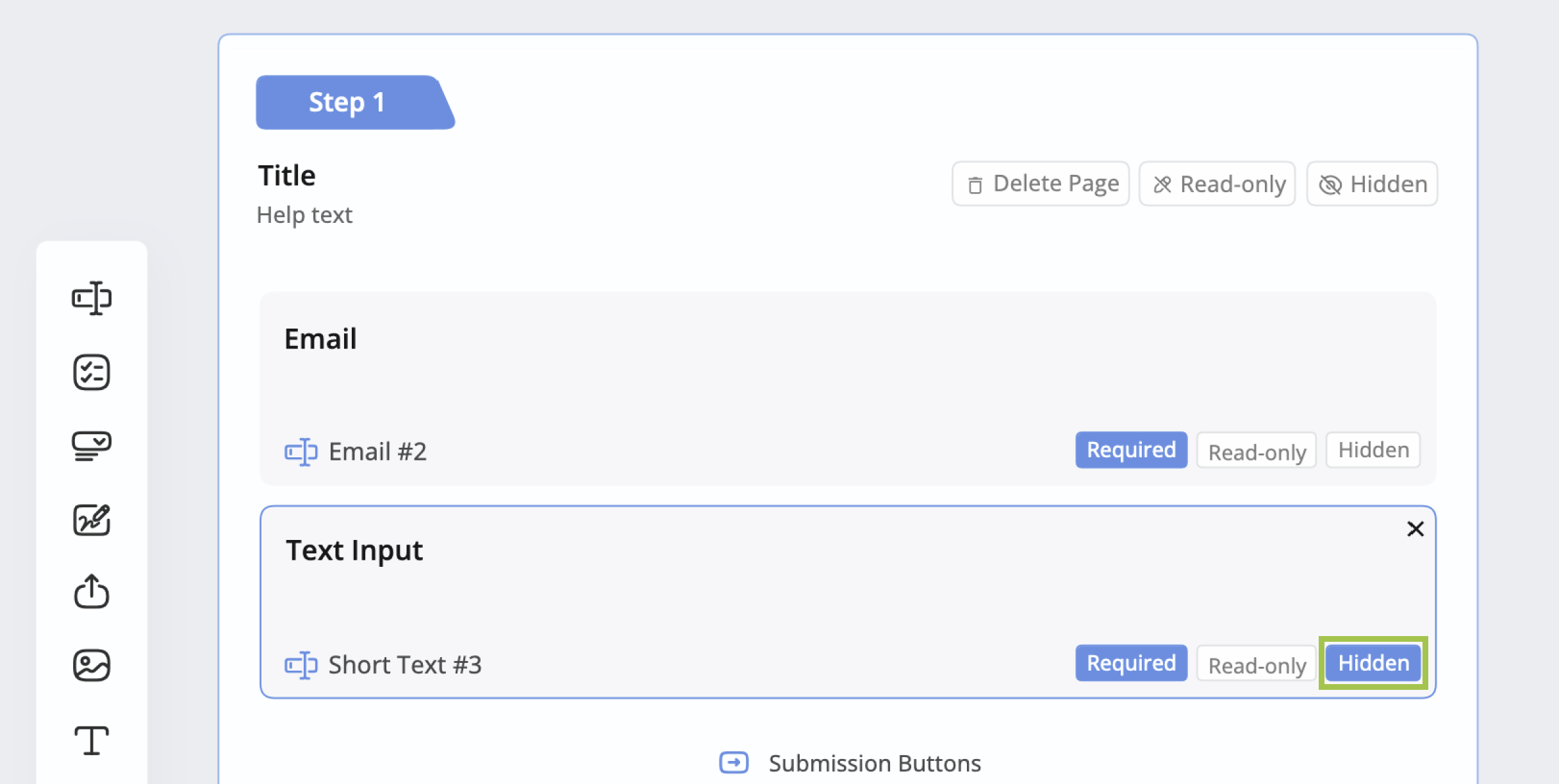 Add a hidden field: Add a field to your form. This can be a Text Input or a Dropdown field. Set this field as