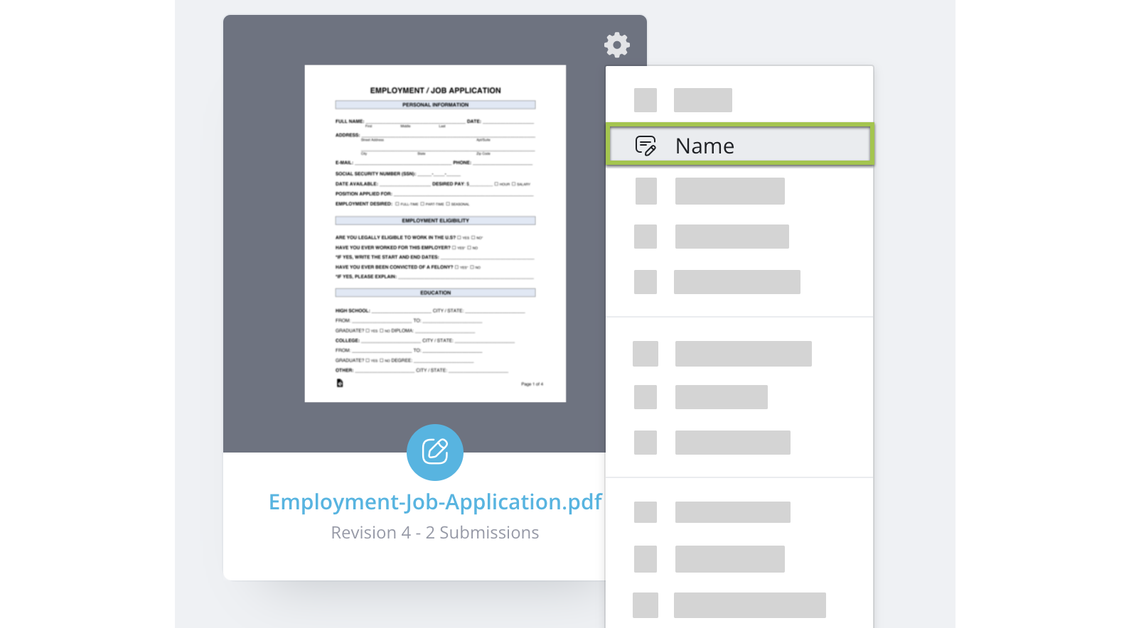 Click the Settings (gear) button at the top right of the form, then click Name.