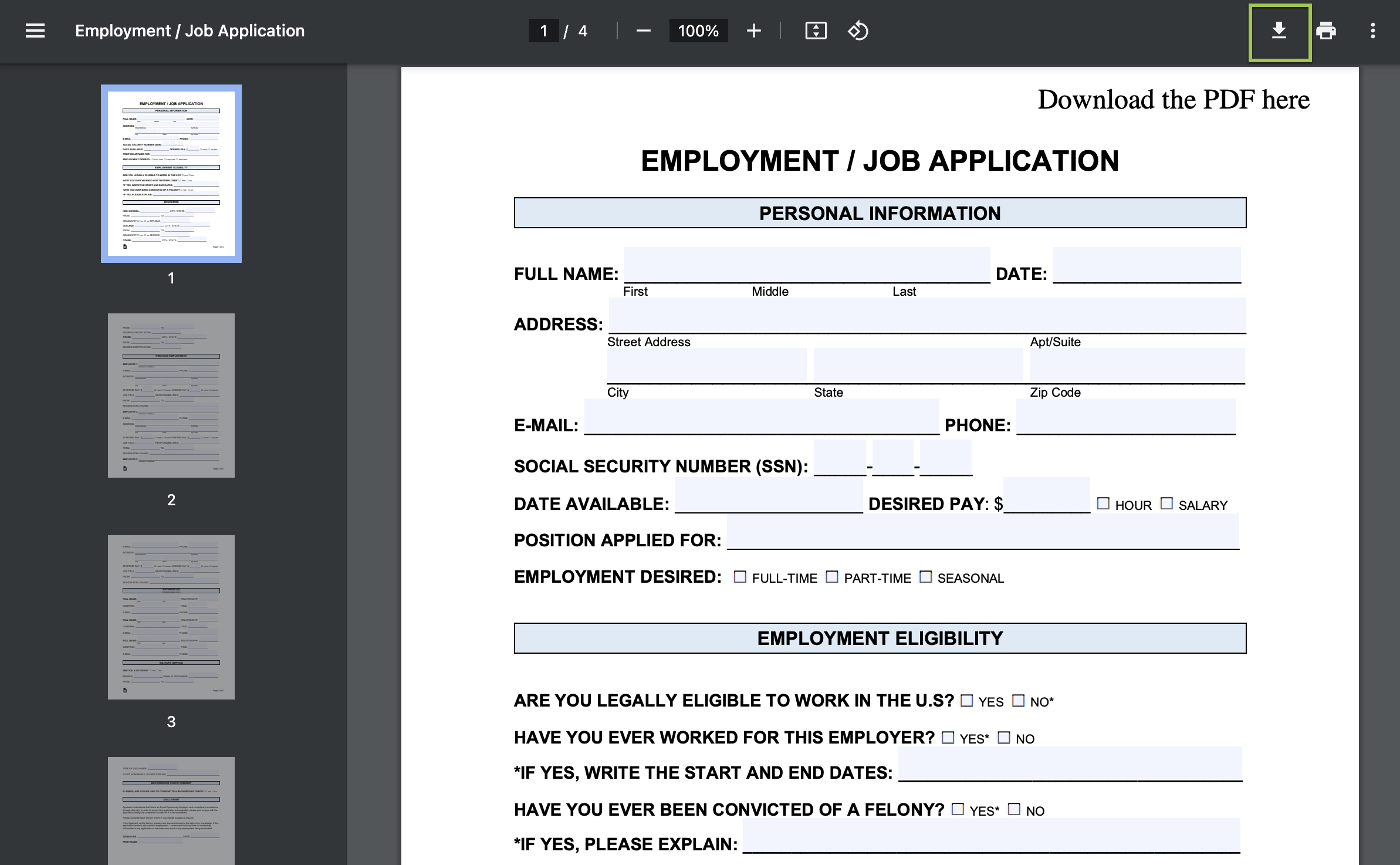 On the top right of the window, click the Download button and choose a directory on your computer to save the downloaded PDF.