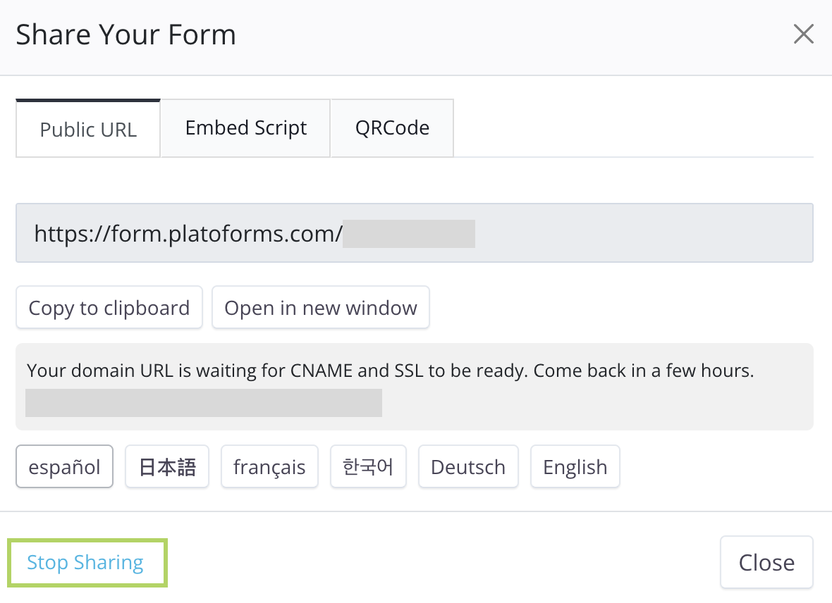 After stopping sharing, the form will no longer count against your plan’s capacity, and you can proceed to publish new forms.