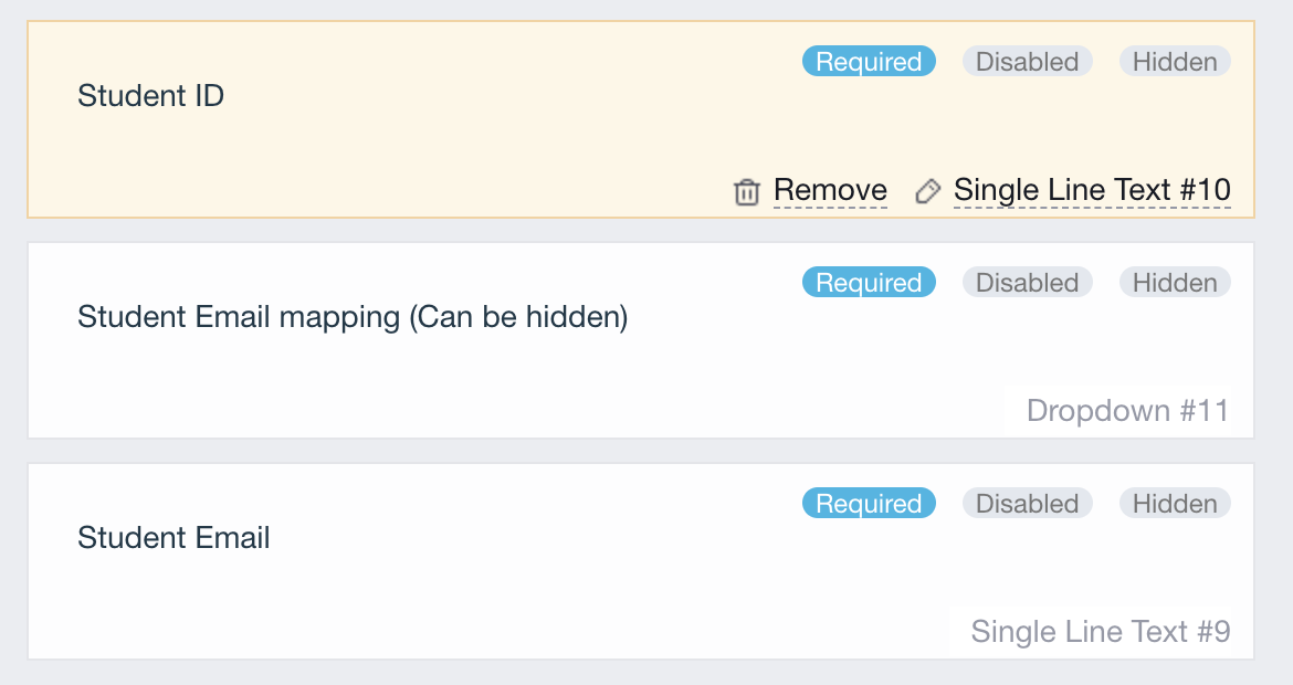A Dropdown field to show the ’email’ connected to the ‘student ID’.