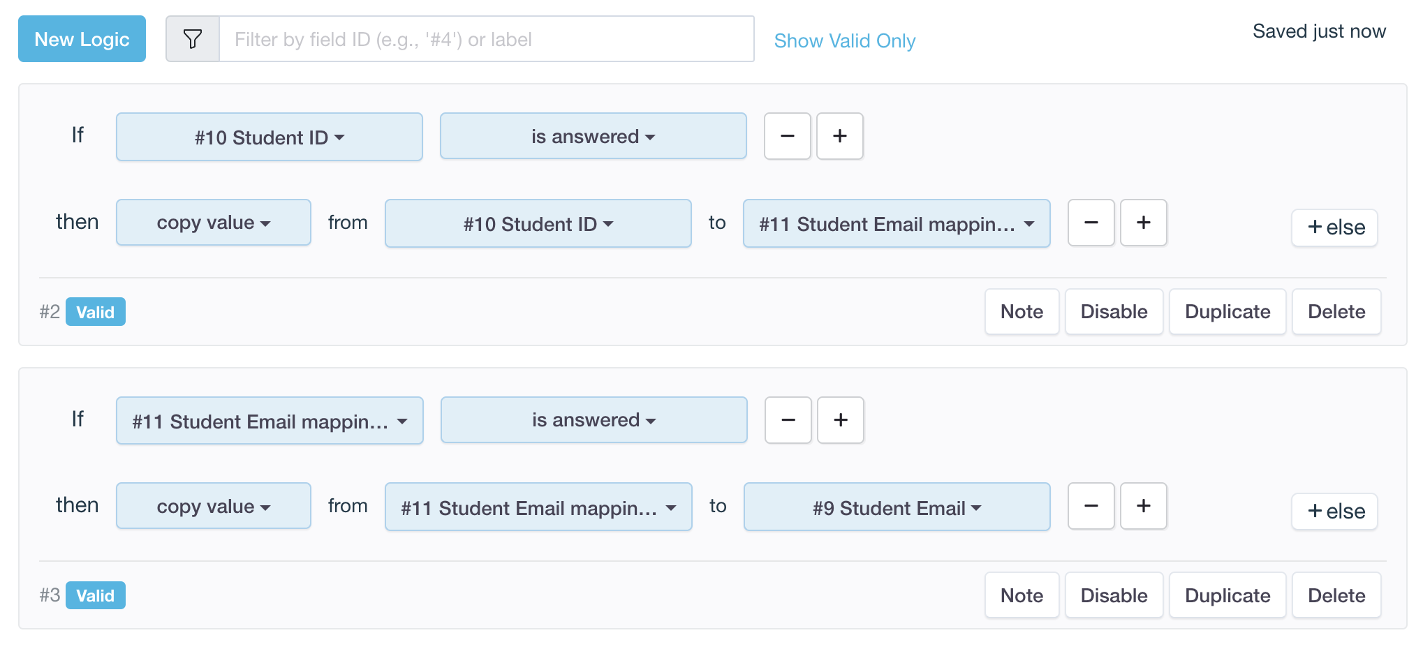 In this case, if people fill in ‘student ID’, PlatoForms grabs info from a uploaded file and fill it into the ’email’ field.
