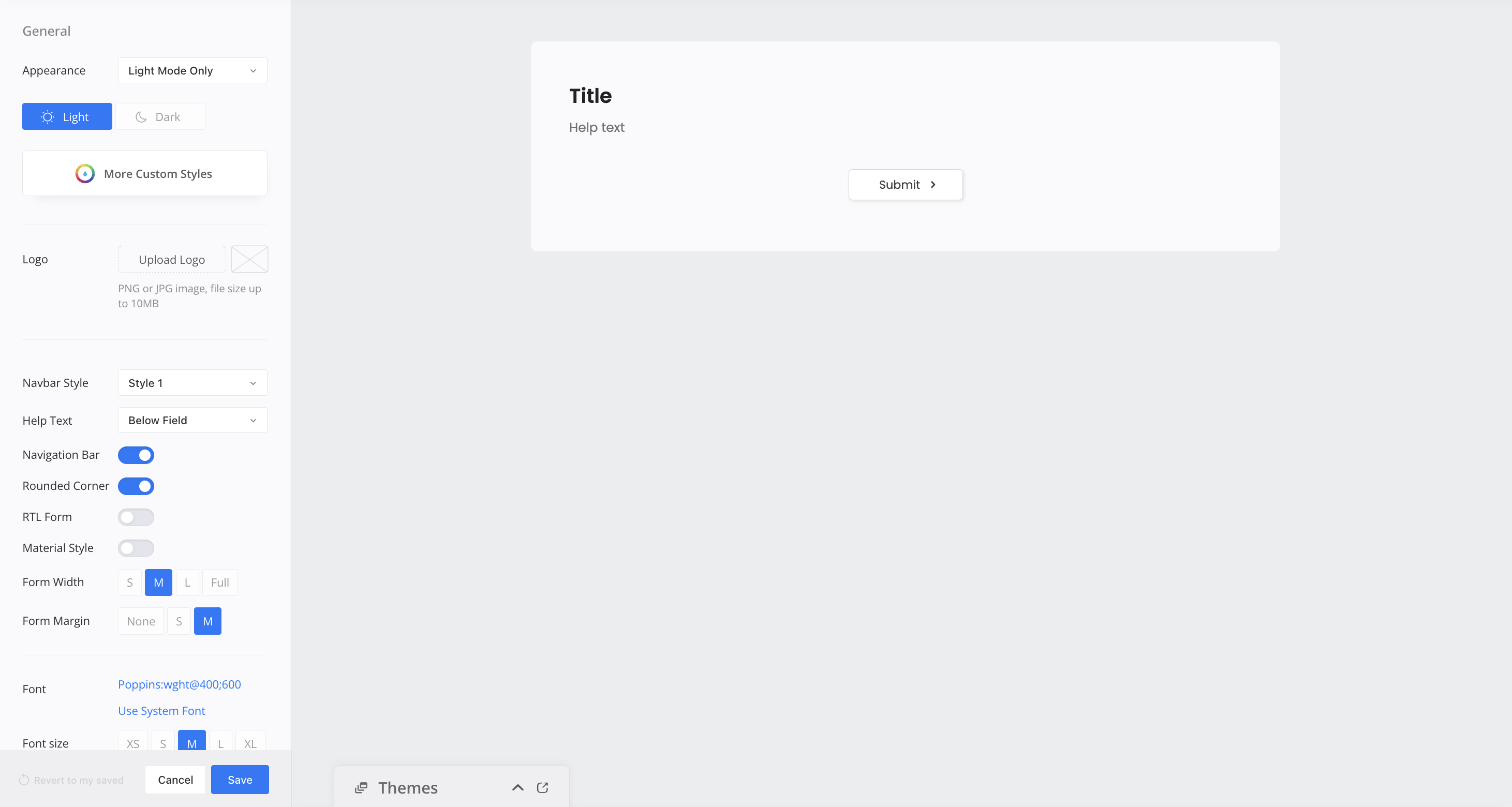 You can also save your theme as a shared theme to make it available for your team. For more details, refer to the Save as shared form theme section.