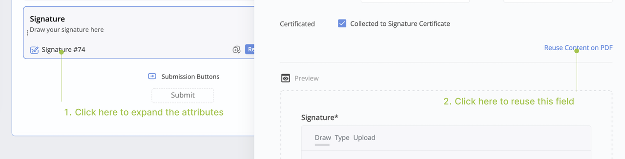 Once filled, the content from the source field will be automatically copied into the field that reuses the value. This field won’t be visible on your online form but will appear in the PDF generated after the user submits their form.