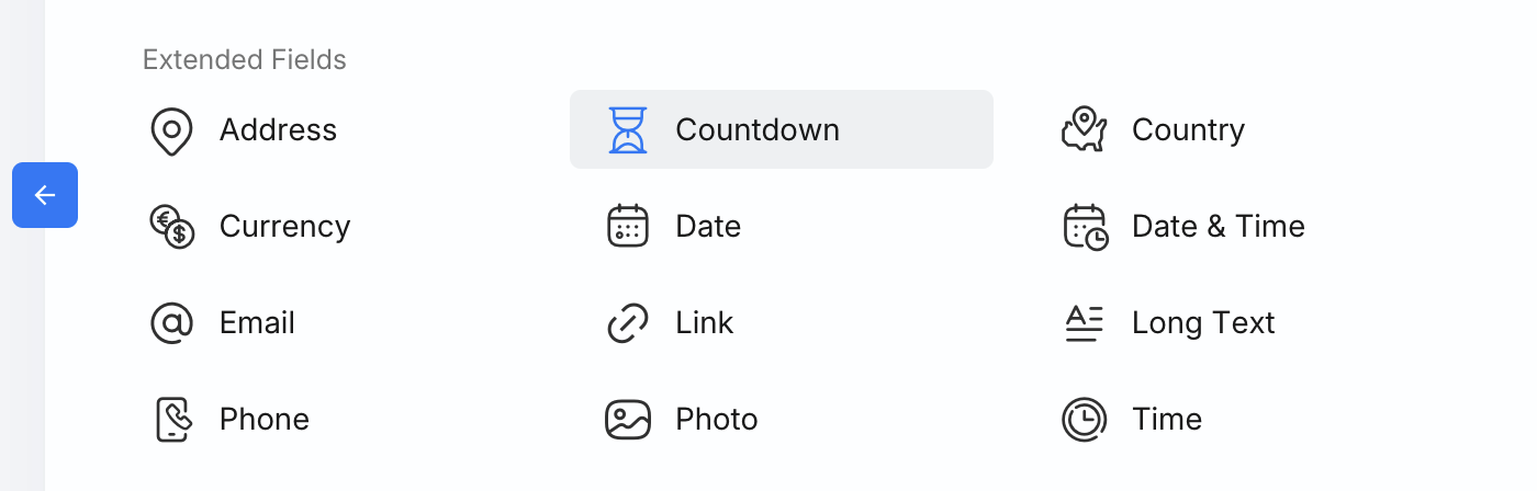 Pour ajouter un champ Compte à rebours, dans le constructeur de formulaires, cliquez sur le bouton Compte à rebours dans la barre d’outils à gauche.