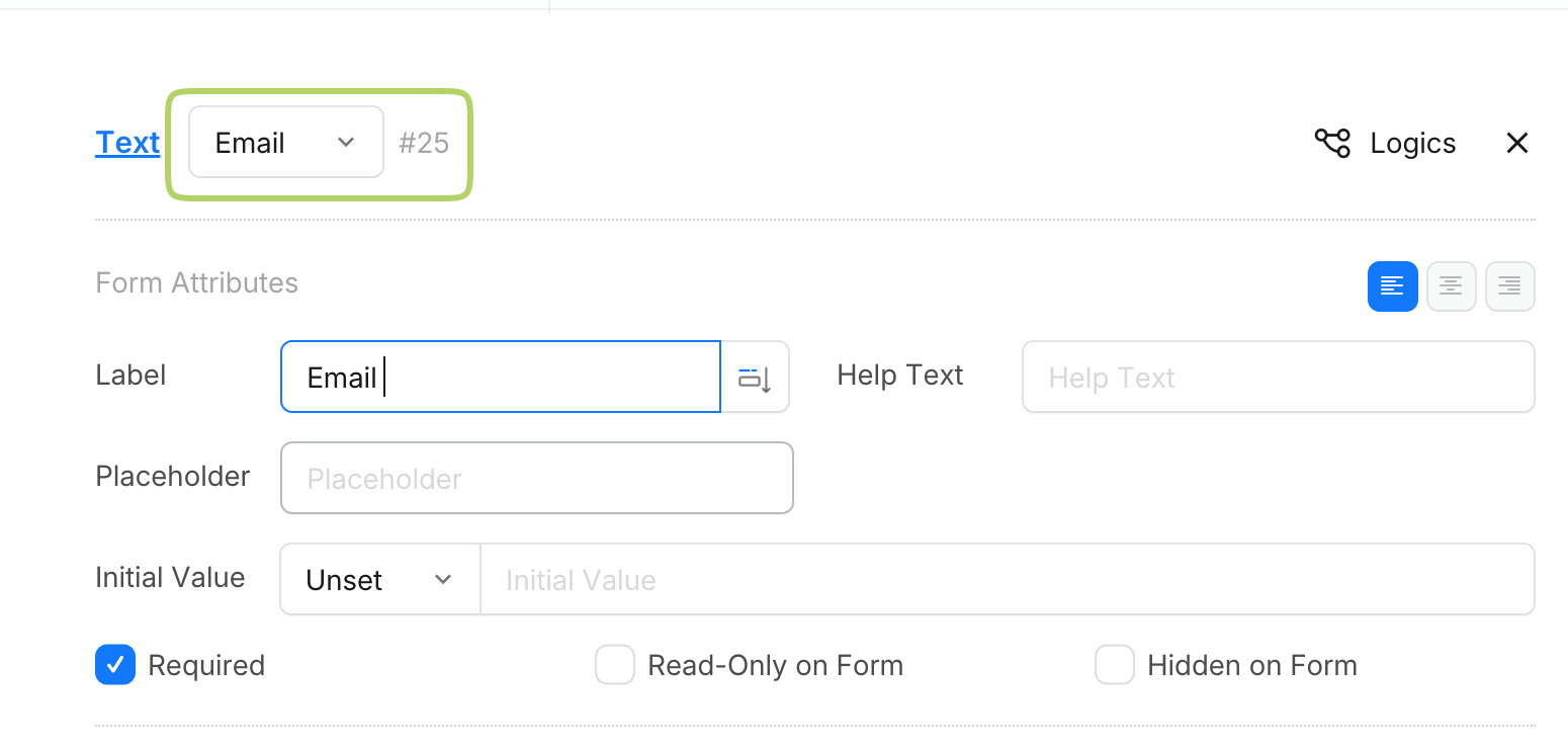 Pour le champ texte, utilisez un champ de type Email pour garantir que la valeur saisie est une adresse email valide.